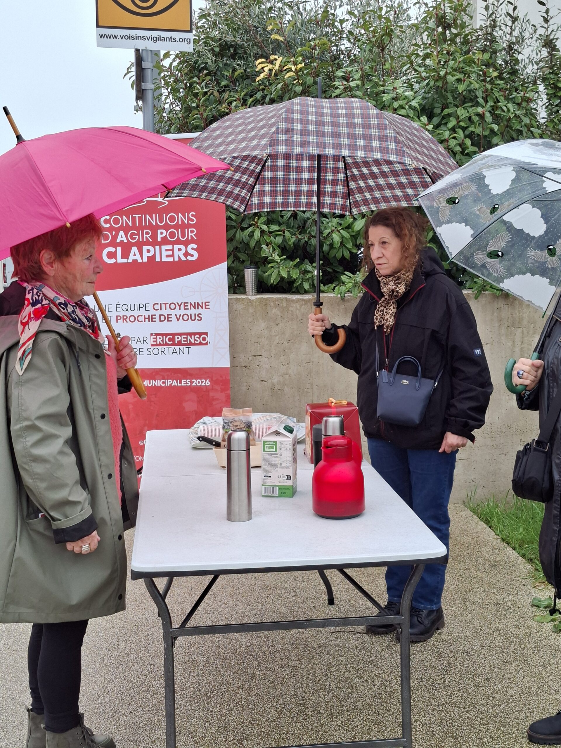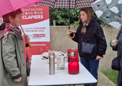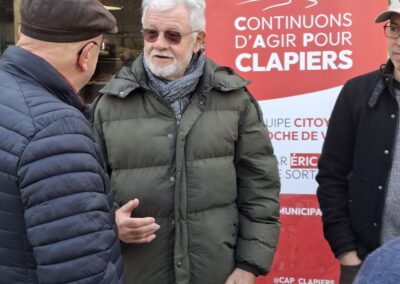 Chaque dimanche, les membres de l’équipe « Continuons d’Agir pour Clapiers » viennent à la rencontre des Clapiéroises et des Clapiérois au marché et dans le centre du village. Un moment d’échange convivial autour d’un café chaud.